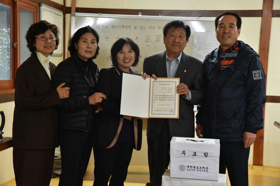 - [제주] 포교사단 제주지역단 제9대 단장 및 감사 선거 결과를 공지합니다. ■ 일시 : 불기2559년 11월 14일 오후 2시부터 ■ 장소 : 제주불교문화대학 총학생회 사무실 ■ 결과 : 단장 오태숙(찬성 10표, 반대 1표) 감사 고순자(찬성 11표) 감사 강금림(찬성 9표, 반대 1표, 무효 1표)