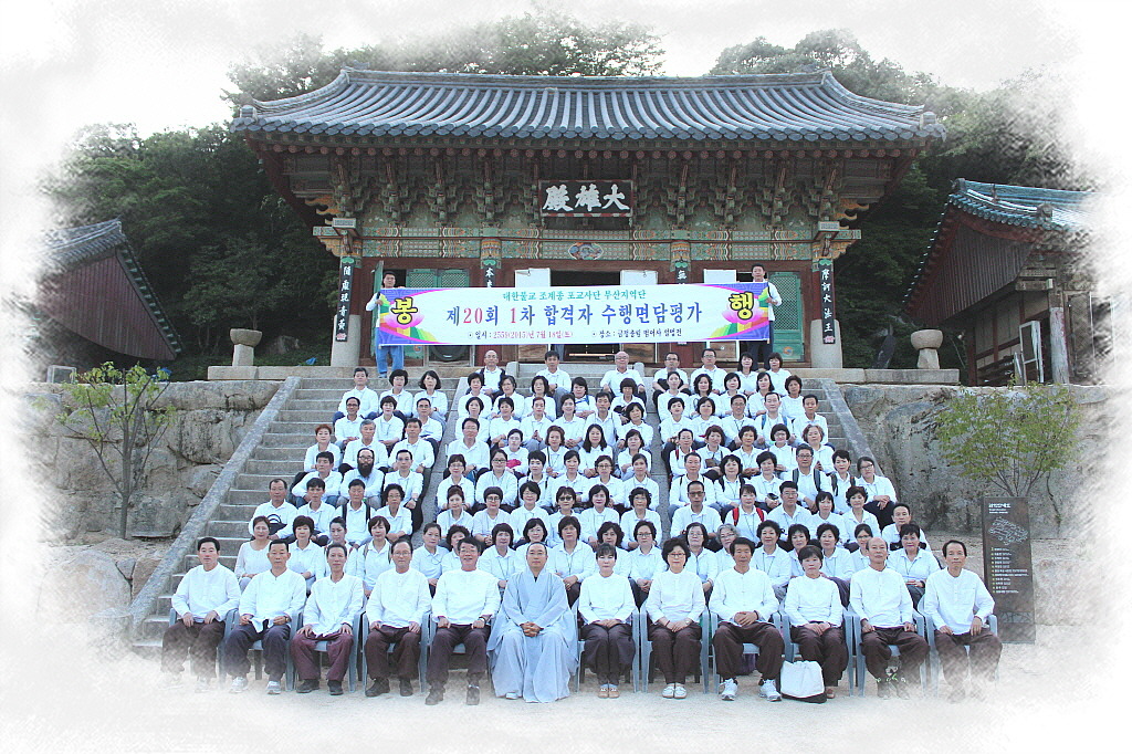 - [부산] 포교사단 부산지역단(단장 향적 강수대)은 불기 2559(2015)7년 7월18일(토) 오후 1시에 금정총림 범어사 설법전에서 제20회 포교사고시 1차 합격자 수행면담평가를 포교사단 부산지역단 지도법사이시며,범어사 포교국장이신 지장스님을 모시고 제 20회 1차 합격자들 121명과 함께 여법하게 봉행 하였다. 수행면담평가는 제20회 1차 합격자들은 포교사로서의 기본적인 자질과 인성과 포교원력을 점검하고 평가하는 자리로서 시종일관 진지하게 진행되었다