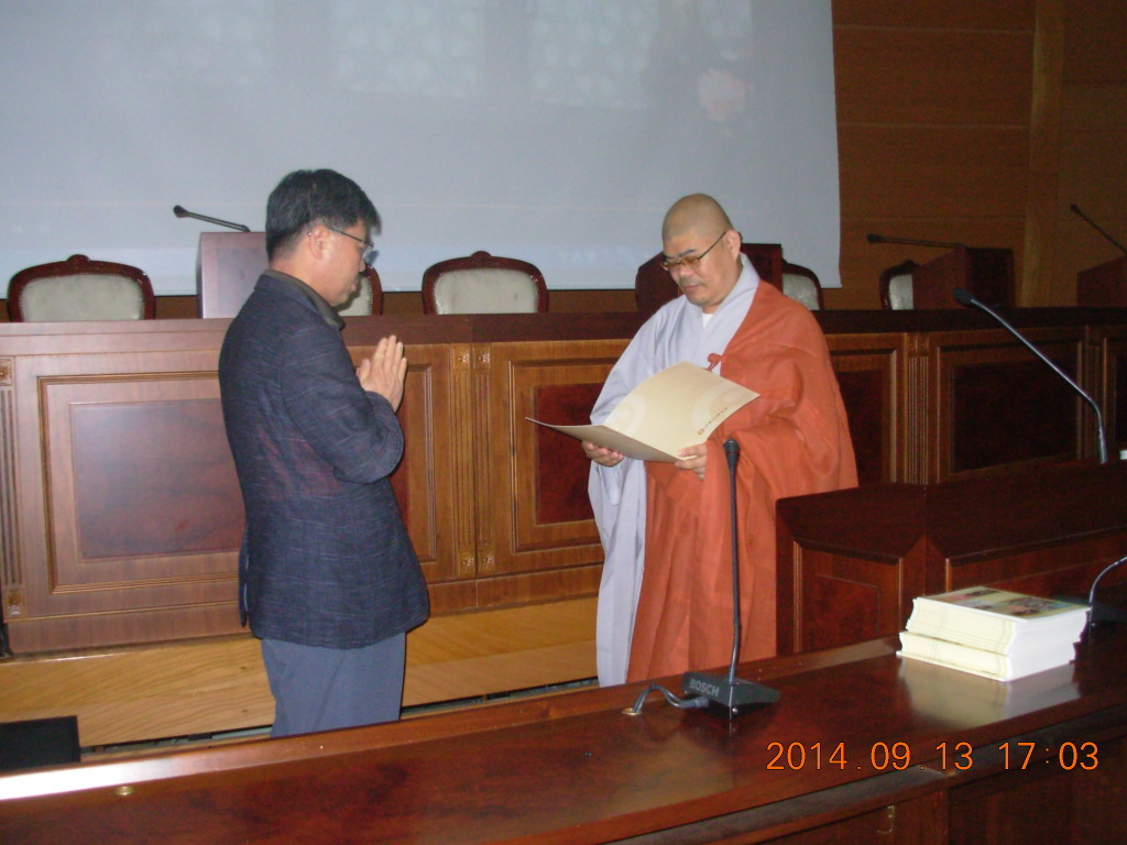 - [서울] 불기2558(2014)년 9월 13일 토요일 오전 10시부터 오후5시까지 대한불교 조계종 불교역사 문화기념관 2층 국제회의장에서 포교자격직 (어린이, 청소년) 지도자 연수를 개최 하였습니다. 삼귀의에 이어 반야심경 봉독 후 사단법인 동련의 재현스님의 간단한 인사말씀에 이어 일정을 소화하기 위해 첫 강의가 바로 시작 되었다. 이 자리에는 전국 어린이, 청소년 지도에 지대한 관심을 가지신 포교사, 상담사, 자격증을 겸비한 100명이 조금 넘는 분들이 참석 했으며 서울 지역단에서도 덕진 정목희 단장, 법용화 한애경 부단장, 원만성 김용희 부단장, 마니행 이명숙 북부 총괄팀장과 혜관 김석두 포교사님 동부 반야지 김소희 팀장, 남부 대륜 권오헌 팀장, 북부 무구 김종현 팀장 등 서울 지역 어린이팀 포교사님들이 참석하여 너무나 열심히 강의에 경청하신 모습들이 거룩하신 부처님 모습이었습니다. 09:30 ~ 10:00 접수 10:00 ~ 10:10 입제식 10:10 ~ 11:40 상담개발원 이사 이신 혜타스님의 청소년 명상 지도 방법론 11:40 ~ 12:10 대한불교조계종 포교원 박성수님의 분야별 어린이 •청소년 네트워크 12:10 ~ 13:00 점심공양 13:00 ~ 14:40 신라대학교 백문현 교수님의 불교문자디자인 14:40 ~ 15:00 휴식 15:00 ~ 16:40 동구대부속여자고등학교 교법사 권진영 미디어포교프로그램 청소년 코칭 방법론 16:40 ~ 16:50 회향식 청소년 명상 지도 방법론에 대해 혜타 스님의 강의 내용을 실어 보고자 합니다. 강의록에 나와 있는 것은 집에서 읽어 보며 충분히 알 수 있을 것이라 하시면서 한 가지라도 더 가르쳐 주고 싶은 스님의 성의에 고마움을 글로 대신 하려 합니다. 어린이, 청소년들에게 활짝 웃는 그림이나 부처님을 보게 한 다음 옆사람과 마주 보고 웃으면서 두 단어로 “당신은 미소가 아름다워서 더 젊게 보입니다” (이 때 열정과 진심을 담아서 인사 해야함) 이런 식으로 인사 나누기 하라 합니다. 명상(冥想) 이란? 판단을 중지한 고요한 마음으로 현재 순간에 의식적으로 주의를 집중 하는 것이다 •팃낙한 스님 “자신의 의식을 지금 현실에서 살아 있도록 하는 것이다.” 예) ①물을 한 모금 마신다. ② 조금 적게 먹고 입안에서 3초간 머금고 있다 물맛을 현저히 느끼고 천천히 목으로 넘기면서 위장에 들어가는 느낌을 느껴 본다.( 이렇게 함으로서 판단을 중지한 상태에서 의도적으로 마음을 입안에 물에 주의집중 한다) 아이들에게 첫 번째와 두 번째 먹었을 때 무엇이 달랐어? 질문해 보고, 괜찮았어? 계속 질문을 던져 주면서 아이들과 느낌을 나눈다. 명상을 하면 좋은 것 •두통, 요통, 협심중의 덜어준다. •혈압을 낮추어 주고 고혈압 치료에 도움을 준다. •불면증을 이긴다. •과호흡증에 대처할 수 있다. •항암효과를 증진 시킨다. •스트레스를 막을 수 있다. •불안과 우울증이 개선 된다. •창의력을 높일 수 있다.(2007년 하버드대 밴슨,하버드대 심리학 연구소 발표자료) 청소년들이 경험하는 명상효과 •주의집중력이 좋아진다. •사고력이 활성화 도어 창의력이 높아진다. •기억력이 향상 된다. •정서조절 능력이 향상된다. ★명상을 하면 머리가 좋아진다. •명상을 하면 머리가 몸의 산소 소비량이 20% 정도 줄어든다. •왜요? •깊은 호흡으로 심장박동이 줄고 피의 흐름이 느려지기 때문 •그래서요? ★명상으로 왜 머리가 좋아 질까요? - 몸속에 남겨진 20%의 산소를 뇌에서 사용하게 되므로 뇌 속의 혈류량이 늘어나게 되어 머리가 활발하게 기능하게 되어 머리가 잘 돌아 가게 된다. ★호흡명상 •들숨과 날숨을 관찰하는 수행법이다. •호흡명상으로 마음이 고요해지고 평온해지면서 행복이 자연히 뒤 따라 온다. •마음이 본래 자연 상태가 “행복” 하기 때문이다. ※ 3.21 로 행복해진 당신이 보입니다♡ 초보자는 눈 감는다. 아니면 눈을 조금 떠도 된다. 부처님 눈으로 •호흡이 들어감과 나감을 알아 차린다. 1일 3회 한다.(꼭 하세요) 21은 3.7은 21일 동안 꾸준히 하면 자기 습관이 된다. •들숨 날숨 3번 하는 이유 마음이 가라 앉아 고요해진다. 마음이 가라 앉으면 차분해지고 편안해 진다. 고요하고 차분해지면 끝은 행복이라는 마음이 있다 행복을 알아차리며 그 자리에 있다. 마음속 본래 자리가 행복이다. ♣불교의 심리학에서는 느낌의 발생을 접촉으로 설명한다.(염처경) 예) 악수해라 •몸 느낌의 변화 과정을 생생하게 경험함으로서 마음에 미묘한 변화를 인식할 수 있게 된다. •마음이 생성, 변화, 소멸을 알아차릴 수 있게 되는 것을 잘 관리 할 수 있다는 뜻이다. “어둠속에 보물이 있다 해도 등불 없이는 못보는 것처럼 부처님의 가르침을 설하는 사람이 없으면 지혜로와도 깨닫지 못한다.”(화엄경) “이제 너희들에게 부촉하노니 너희들은 마땅히 마음을 다해서 부처님 가르침을 전해 널리 알리도록 하라.”(법화경) 취재 / 홍보팀 보광화 김현숙