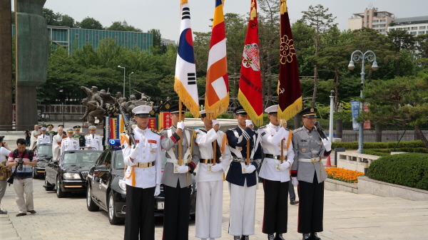 - [포교사단] 제15회 호국영령 천도 법회가 6월 22일(일)10시 용산 전쟁기념관 광장에서 대한불교조계종 군종교구 주최와 국군불교총신도회 주관으로 거행되었다. 군포교 일선을 담당하고 있는 대한불교 조계종 포교사단(단장, 곽명희)는 이날의 천도법회가 남다르게 다가온다. 포교사단은 서울지역단 포교사 200여명이 참석한 오늘 행사는 예비포교사 사회봉사교육을 겸하였으며 조국을 위해 산화한 젊은 호국영령들의 천도법요에 진심을 담아 영령들의 극락왕생을 발원했다. 수불 스님(범어사 주지)은 22일 대한불교조계종 군종특별교구(교구장 정우 스님)이 서울 용산 전쟁기념관 중앙광장에서 봉행한 ‘제15회 호국영령 천도법회’ 추모사에서 이같이 말했다.스님은 “6‧25전쟁이 발발한지 60주년이 지났지만 종전이 아닌 정전 상태이다. 불자와 국민이 평화와 번영을 위해 앞장설 테니, 호국영령들이 앞길을 인도해 달라”고 했다.그러면서 “불법의 평화적 역할을 성찰해 한반도 평화의 길, 나아가 세계평화의 길을 불자들이 열자”고 당부했다. 행사는 어산장 동주 스님을 비롯한 의전단 스님들의 천도범패의식에 이어 호국영령 추모법회, 문화행사 순으로 진행됐다.총무원장 자승 스님은 추모법회 영가법문에서 “제불보살이 위신력으로 순국선열과 호국영령의 앞길을 밝혀 인도해 달라”고 했다.스님은 “우리가 오늘날 누리는 평화는 조국 위해 목숨을 버린 순국선열의 희생이 있어 가능했다. 숭고한 희생이 헛되지 않게 선진조국을 위해 발돋움하고 후손의 삶을 윤택케 해야 한다”고 했다.그러면서 “순국선영과 호국영령들은 중음세계를 벗어나 극락왕생하길 기원한다. 삶과 죽음이 비어 있음을 알면 진리의 세계에 머물 수 있다. 고해를 벗어나 열반의 언덕으로 가시옵소서”라고 했다. 포교원장 지원 스님은 포교부장 송묵 스님이 대독한 기원문에서 “불자들이 앞장 서 한반도의 항구적 평화 정착을 위해 노력하자”고 했다.국군불교총신도회장 김현집 장군은 발원문에서 “우리는 투철한 국가관과 확고한 호국의지를 견지하고 앞서 간 선열의 숭고한 희생 앞에 간절히 합장한다. 조국의 평화통일을 간절히 바란다”고 했다.행사에는 국회 부의장 정갑윤 의원, 국방부 및 합참인사, 6‧25참전 용사 및 유가족, 보훈단체, 아랍에미리트 대사 등 각국 주한대사, 프랑스‧일본 등 참전국 무관, 군승법사와 일반 신도 등 1000명이 참석했다. 천도의식과 추모법회가 끝난후 문화행사가 이어졌으며 중식으로 6.25때를 회상한 주먹밥과 식수가 제공되었다. 나무마하반야바라밀 취재 / 보현행 이정기
