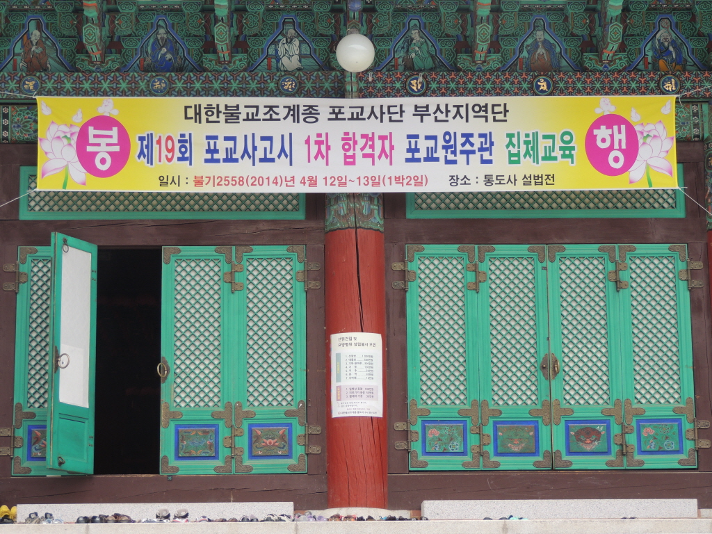- [부산] - 제19회 포교사자격고시 1차합격자 중앙연수 - 부산,울산 경남지역단의 제19회 포교사자격고시 1차합격자 중앙연수가 4월12일 통도사 설법전에서 1박2일동안 봉행하였습니다. 부산지역단의 강수대단장과 울산경남지역단의 이문자단장 그리고 임원들이 동참하였으며.중앙연수교육프로그램과 더불어목탁습의와 참선을 비롯한 수행프로그램도 같이 병행하였으며, 4월13일 오전 11시40분경에 회향을 하였습니다.