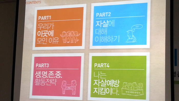 - [좋은인연] 사)좋은인연에서 지역주민을 위한 ‘사랑의 전화’를 시작하였다. 이 사업을 위한 준비 단계로 2014년 4월 18일 10시~13시 강북구 미아동 주민센터에서 ‘생명지킴이(봉사자)’ 교육을 가진 것이다. 생명지킴이 봉사자로 활동하려면 3시간의 교육을 받고 이수증을 교부받아야 자격이 부여된다고 한다. 이날 교육을 맡아주신 강사선생님은 강북구 보건소 정신건강증진센터에서 근무를 하시는 분으로 자살 정의에대한 이해, 자살예방지킴이로서 기본 마음가짐, 자살예방전략 등을 강의하였고, 강의가 끝난 후 그날 배운 내용을 복습하는 의미로 ‘존중하며 들어주고 명확하게 묻기’를 연습해보기도 하였다. ‘사랑의 전화’는 독거노인들을 대상으로 해서 안부와 말벗 등으로 독거어르신들을 돌보는 사업이다. 사)좋은인연에서는 미아동 일대의 독거어르신 100분을 대상으로 봉사요원들을 결성하기로 하고 이날 1차적으로 생명지킴이 교육을 받은 것이다. 우리나라의 자살률은 불명예스럽게도 세계에서 수년간 1위를 달리고 있다. 우리나라 중에서도 서울이 1위이며, 서울 중에서도 강북구가 자살률이 가장 많은 도시라고 한다. 생명지킴이 위촉장을 받고 활동하게 되면 지킴이 한 명당 최대 두 분의 어르신을 상대로 케어를 하게 된다고 한다. 그렇게 본다면 많은 수의 생명지킴이 봉사요원들이 필요하다. 1차 교육은 사)좋은인연의 회원들을 주축으로 받았지만, 서울지역단의 많은 포교사가 생명지킴이 봉사에 적극적인 마음들을 내서 활발하게 일이 진행되었으면 하는 바람으로 일을 시작하려 한다.