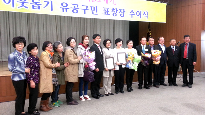- [좋은인연] 성북구청에서 복지성북 구현에 기여한 단체에 시상식을 하였습니다. 2014년 4월 8일 15시 성북구청 4층 성북아트홀에서 표창장 수여가 있었습니다. ‘2014 희망온돌 따뜻한 겨울나기 사업’에 참여하여 어려운 이웃에게 따뜻한 나눔을 실천한 사)좋은인연이 이날 표창장을 수여받았습니다. 김영배 성북구청장은 이 자리에서 성북구민들이 복지활동에 나날이 관심과 참여가 많아져 최근 5년 사이에 1/3에 해당하는 자살자가 줄어들었다고 말하며, 성북구는 높은 곳에 있는 동네가 되기보다는 나눔과 사랑이 있는 따뜻한 성북구가 되도록 노력하자고 말했습니다. 사)좋은인연은 성북구에서 많은 활동을 해오고 있습니다. 추운 겨울철에는 독거어르신들게 난방용기를 나눠드리고 있고, 명절이 되면 떡국떡과 송편을 나눠드리며, 무료한방진료, 김장나누기, 반찬나누기 등을 꾸준히 진행하고 있습니다. 곽명희 이사장이 사)좋은인연을 대표하여 수상을 하였고, 임희웅 전 이사장과 회원들이 참여하여 영광스런 기쁨을 함께하였습니다. 곽명희 이사장은 이 기쁨과 영광을 사)좋은인연의 모든 회원들에게 돌린다고 말했습니다.