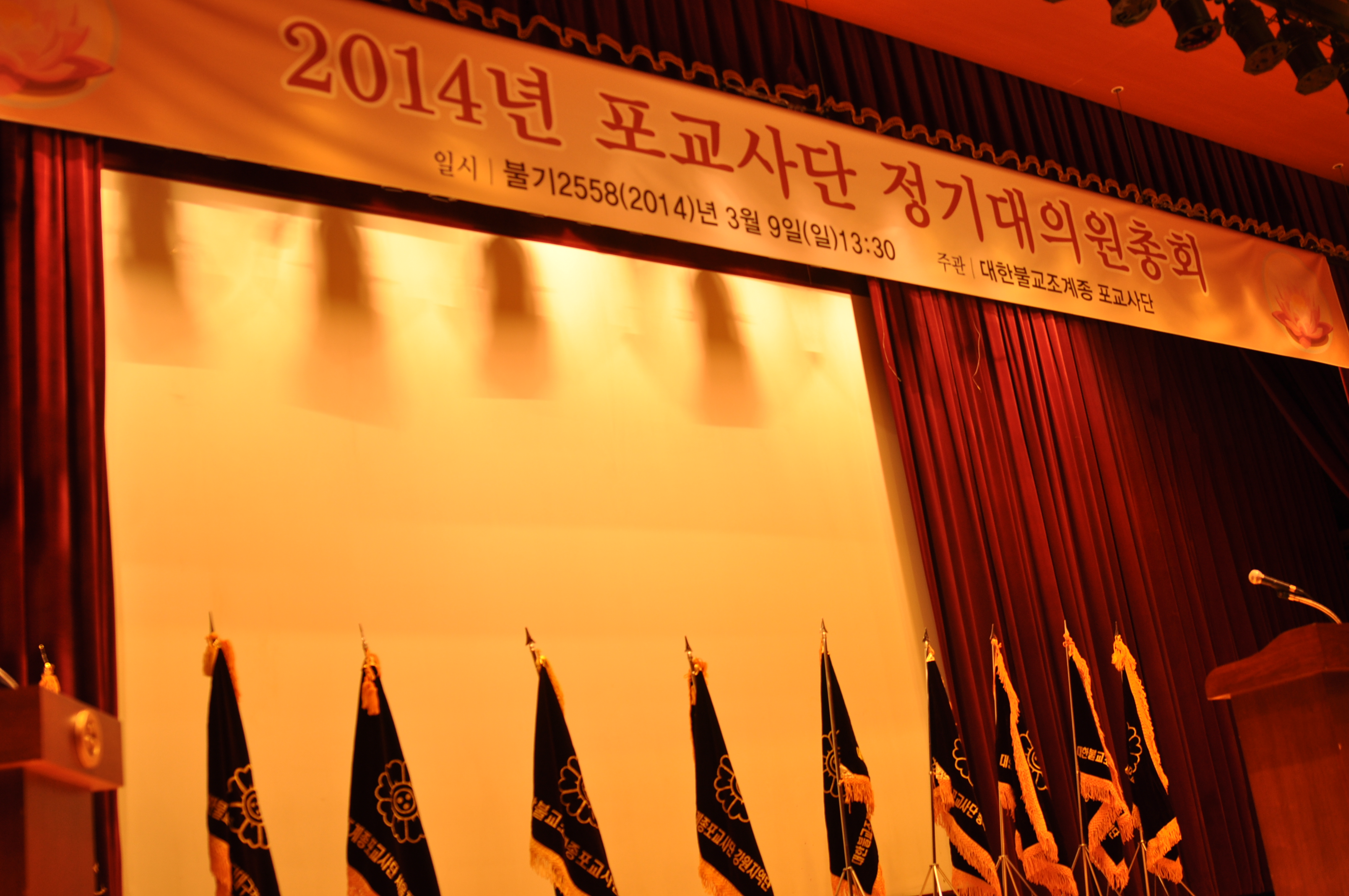 - [포교사단] 2014년 3월 9일(일) 오후 1시 30분부터 한국불교역사문화기념관 지하2층 전통문화예술공연장에서2014년 대한불교조계종 포교사단 대의원총회가 진행되었습니다.의장은 곽명희 포교사단 단장이고, 사회는 윤기중 포교사단 수석부단장이었으며 포교부장 송묵스님께서 법문을 해 주셨습니다.안건은 2013년 사업결산 승인의 건, 2014년 사업계획 및 예산 심의의 건, 울산경남지역단 분단의 건, 세개가 상정되었으며, 모두 결의되었습니다.