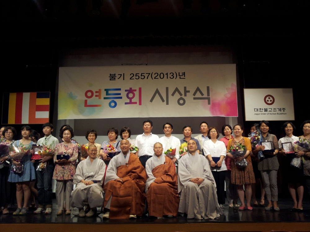 - [서울] 연등회 시상식 불기2557년7월15일 월요일 대한불교조계종 한국불교역사문화기념관 지하2층 공연장에서 2013년 연등회 시상식을 개최하였다. 중요무형문화재 제122호에 등록되어있는 연등회 보존위원회의 주최로 이루어진 이날 행사는 연등회에 적극적으로 참여한 단체와 개인들을 격려하기 위해 마련된 자리로 총 19개 단체가 수상했으며 정진상. 보현상. 원력상등 단체와 개인9명에게 영광이 주어졌다. 정진상에는 도선사 연등공방을 비롯한 7개 단체가 수상했으며 보현상에는 화계사 학생회를 비롯한 7개 단체가 수상했다. 또 원력상에는 대한불교조계종 포교사단 서울지역단등 5개 단체가 수상했으며 연등회 해외 홍보를 위해 최선을 다해온 신영진 포교사를 비롯한 8명에게 개인 표창이 주어졌고 특별상에는 동자승 단기출가 프로그램 '보리수 새싹학교'를 잘 운영해온 조계사 행사기획팀이 수상했다. 수상자 및 수상팀 명단은 아래와 같다. 아 래 정진상 도선사 연등공방 .한마음선원 어린이회 .조계사 지역본부 .봉은사 어린이회 .영화사 합창단 불광사 법회사무국 .수국사 전통등반 보현상 화계사 학생회. 서대문 조계종 사찰 .진각종 서울자성학교 교사연합회. 관음종 연희단 진관사 연희단. 천태종 청년회. 금강선원. 원력상 대한불교조계종 포교사단 서울지역단. 승가사 .금륜사 .수선회 .한국불교문화사업단. 특별상 조계사 행사팀(동자승) 표창패 국제포교사 신영진. 연화세계, 만등만화회 김분자. 불교레크리에이션협회이윤진. 동국대학교 직원 박재송.종로경찰서 교통안전계장 백재흠 경위. STAFF 미래 류승철. 퓨처캠 김진영. 원진건설 박장규 부장. 사진협찬 / 북부총괄팀 김석두 포교사 취재 / 남부총괄팀장 한애경 법용화 포교사