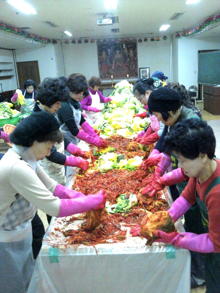 - [좋은인연] 한 겨울을 따뜻하게 보낼 수 있도록 준비하는 것 중의 가장 큰 것이 김장김치 담그기일 것이다. 사)좋은인연은 김장철을 맞아 성북구에 거주하고 있는 불우이웃에 김장김치를 만들어서 전달하는 훈훈한 사랑의 손길을 보냈다. 2012년 11월 22일 오전 9시부터 김장김치 만들기 봉사에 들어간 박윤재 사업부장을 비롯한 30여명의 사)좋은인연 회원들은 구슬땀을 흘리면서도 얼굴가득 웃음을 지으며 어머니의 손맛을 뽐냈다. 이날 오전 11시 류장환 안암동사무소장은 봉사의 현장을 방문하여 추운 겨울철에 김장나누기의 행사로 안암동에 거주하는 독거노인 등의 이웃들이 따뜻한 겨울을 보낼 수 있게 되었다며 좋은인연 회원들에게 진심어린 감사의 말을 전했다. 충북 괴산에서 배달된 배추와 양념을 버무려 맛있게 만들어진 배추김치 130상자 중 100상자는 안암동사무소에 전달하고 30상자는 영등포 시립장애인복지관에 전달했다. 안암동사무소는 임희웅 사단법인 이사장이 전달을 하였고, 영등포 시립장애인복지관에는 계영석 서울지역단장이 방문하여 전달을 하였다. 임희웅 이사장은 두 분의 독거노인 집을 방문하여 직접 김치를 전달하기도 하였다.