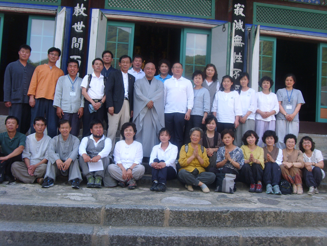 - [포교사단] 6월 16일 (토) 금년도 팔재계 실시를 위한 사전 방문차 중안단 임희웅 단장과 곽명희 수석 부단장.서울지역단 계영석 단장과 중앙단 사무국 직원 ,우리지역 단장 정영균과 금년도 팔재계준비 지원단장을 맡은 김정연 수석부단장, 장송기 팀장, 김경영 자원봉사 팀장, 강막례 홍보팀장, 윤경숙 간사등은 광주 역에 도착한 중앙단 임원들과 합류하여 장성 백양사를 찾았다. 오후 1시30분 백양사에 도착하여 고은 포교국장스님의 안내로 시몽 주지스님을 친견하고 금년도 팔재계 실시에 대한 개요 설명과 사전 준비 등 진지하고 흔쾌한 협의와 환담을 나누었다. 오늘 이 자리는 금년도 팔재계 행사가 다른 해 팔재계 행사보다 성공적으로 치루어 질 수 있겠다는 좋은 예감이 들만큼 화기 애애한 가운데 협의와 시몽 주지스님의 덕담이 이어졌다. 주지스님 방에서 차담과 협의가 끝난 다음 주지스님께서 쌍계루까지 나오셔서 루에 올라 그곳에 빼곡이 게시된 400여편의 시조와 한시에 대한 상세한 설명까지를 해 주셔서 이제까지 알지 못하던 쌍계루에 우리 사부대중들의 문화와 역사가 깃들어 있다는 새로운 것을 알게 되는 좋은 기회가 되었다. 주지스님과의 친견을 마치고 행사가 이루어질 현장을 다시 한 번 둘러보고 오늘의 일정을 모두 마쳤다.
