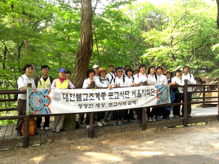 - [서울] 동부지역 지역봉사팀 6월 활동 및 제17회 합격자 연수가 불기2556년 6월 17일 일요일 10:00~15:00까지 있었다. 오전 10시 화계사 일주문에서 모인 30명의 일행들은 기념촬영 후 삼성암을 향하여 산을 올랐다. 계곡을 따라 산을 오르며 등산로에 떨어진 쓰레기 청소를 하였다. 한 시간 후 삼성암에 도착한 일행들은 본격적인 사찰봉사에 들어갔다. 계곡에 쓰러져 방치되어 있는 나무더미들을 잘라서 옮기고, 일주문 밖부터 사찰의 마당까지 빗자루 질을 하였다. 사찰을 끼고 도는 수로에 떨어져 있는 낙엽더미들을 긁어모아 포대에 담는 작업, 화단 주변의 낙엽더미를 치우는 작업 등의 많은 활동을 하였다. 두 시간 여의 활동으로 허기진 일행은 사찰에서 제공하는 카레라이스로 맛있는 점심공양을 하였다. 특히 여름철 입맛을 돌게 하는 아삭이고추가 인기였는데, 큰 그릇에 수북이 쌓인 아삭이고추는 금방 바닥을 드러냈다. 사찰에서는 여기저기 궂은일을 해결해 준 일행들이 고마웠는지 후식으로 갖가지의 푸짐한 과일과 떡을 제공하였다. 이날 삼성암의 사찰봉사활동은 동부지역 지역봉사팀의 팀활동이었고, 제17회 포교사고시 1차합격자의 연수에 해당하는 행사였는데, 김용희 동부지역 총괄팀장이 참석하였고, 특별참석으로 정청현 부단장이 참석하였다. 점심식사가 끝나고 삼성암의 일진 총무스님의 사찰소개가 있었고, 사찰소개 후 바로 교육생들을 위한 1분스피치에 들어갔다. 좌담회가 끝나고 삼성암의 법은 스님께서 교육생들을 위하여 목탁을 지도해 주셨다. 봉사활동을 하러 간 포교사와 교육생들을 위해 목탁지도까지 나서서 지도해주시는 삼성암의 스님들께 진심으로 감사의 말씀을 올립니다.