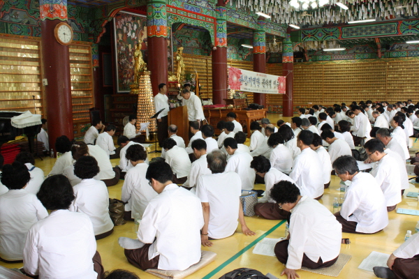 - [광주전남] 광주전남지역단에서는 포교사고시 1차합격자 사찰안내 팀활동 참관교육을 6월 17일 순천시 제21교구본사 송광사에서 사찰안내팀장 김광수포교사의 안내로 여법하게 실시하였다 지역단에서는 9시에 광주 무각사에 집결하여 송광사로 향하였는데, 현지 송광사에서 일부 1차합격자가 합류하여, 23명의 1차합격자가 김광수팀장의 안내로 매표소를 통과하였다 1차합격자 사찰안내팀 참관교육을 주관한 김광수팀장은 송광사에서 송사모(송광사를 사랑하는 사람들의 모임) 회장을 역임하며, 매우 활발히 사찰안내팀 활동을 이끌고 있다 이번 교육은 지난 6월 3일 백양사 팀활동 참관교육에 이어 두번째로 실시되는 교육으로서, 1차합격자들의 사찰에 대한 이해의 폭을 넓히는 데, 매우 유익한 하루가 되었다 김광수팀장은 해설을 하면서, 사찰의 정형화된 모습이나 역사 보다는 송광사 사찰만의 특유의 볼거리 위주로 안내하였으며, 특히 극락교 밑의 용두와 매달린 엽전의 유례에 대하여 자세히 설명해 주었다 그리고 마지막 암행어사 이면상의 공덕비가 쪼개어져 계단 버팀목으로 세워지게 된 경위, 일주문 양쪽에 세워진 소맷돌의 생각하는 사자, 이 외에도 하마비의 애환 등, 그 숨겨진 유례를 안내하였다. 점심 공양 이후에도 보조국사 부도전을 비롯하여, 일반 관광객이 쉽게 접하지 못하는 유적과 유물, 특히 일년에 두 번밖에 개방하지 않는 국사전을 둘러 보고, 끝으로 법정스님의 유골이 묻힌 불일암에 들렀다.