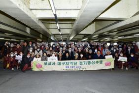 - [대구] 1ㆍ일시:2023년 11월24일 19시 2ㆍ장소:칠성교밑 포교사단 대구지역단 (단장이현숙)추운 날씨속에서도 190 여명이 참석하여 마지막 걷기 명상을 했습니다. 이현숙 단장님의 취임으로 시작된 걷기명상이 어느새 1년10개월이란 시간이 흘렀네요 모두가 좋은 시간과 경험을 한것 같습니다. 1부는 이번달로 막을 내리고 새해에는 새단장님의 선두아래 새로운 걷기명상이 시작 되리라 믿습니다. 그동안 모두 수고 많으셨습니다