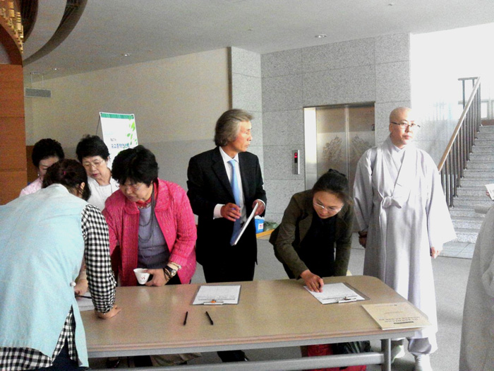 - [부산] 사단법인 부산광역시 불교연합회 제10대, 11대, 회장단 이, 취임 대 법회 봉행 일자 : 불기 2556년 5월14일(월) 오후 5시 장소 : 부산, 부전동 소재 롯데호텔 3층 크리스탈볼룸 주관 : 부산광역시불교연합회 포교사단 부산지역단 (향적) 강수대 단장은 불기 2556년 5월14일 오후 5시, 임원 10명과 함께 부산광역시불교연합회 제10대, 11대 회장단 이, 취임 대 법회에 참석 하였다 이날 부산지역 대덕스님과 각 사찰의 주지 , 각 기관장, 국회의원 , 당선자 등 1,100여명의 사부대중이 참석한 가운데 여법하게 봉행되었다 전 10 대회장 정여스님의 이임사와 11대 수불스님의 취임사가 봉행될 때 참석하신 많은 스님들과 불자들은 취임의 축하와 이임을 뜨거운 박수로 화답의 격려를 하였으며 화기 애애한 가운데 여법한 대 법회를 봉행 하였다, 방명록에 서명하고있는 (향적) 강수대 단장 범어사 합창단 단장이자 지역봉사 원효팀(소연) 조옥자 팀장과 (향적) 강수대 단장 좌로부터 : (호성) 류종상 부단장, (원경) 이해일 사무국장, (일정) 양준동 부단장 새누리당 부산진 (을) 이현승 국회의원 당선자와 (향적) 강수대 단장의 악수 ( 가운데 ) 제11대 회장으로 취임하시는 수불스님 이임사를 하시는 정여 큰스님 취임사를 하시는 11대 회장 수불 큰 스님 부산불교연합회 회기를 전달식 봉행 축사를 하시는 허남식 부산광역시장 (부산지역단 (현법) 최덕수 명예단장 부산지역단 (향적) 강수대 단장 (대덕행) 박혜경 중앙 전문위원 건배제창 승가와 각 단체장과의 기념사진 촬영 포교사단 부산지역단 홍보위원 (고불) 이 종 석 합장