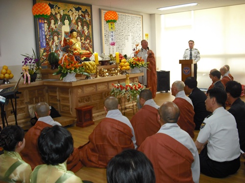 - [광주전남] 오늘(5.17. 15;00)전남 경찰청 (신사옥) 별관 3층 법당에서는 전남 경찰청장과 경찰 불자 그리고 경승실장이신 몽산 큰스님 을 비롯한 열분의 경승 스님들이 참석한 가운데 여법하게 열 렸다. 오늘 봉축법회는 1부 법요식과 2부 다과회가 있었으며 다과회장에서는 11명의 경찰관 자녀에게 주는 장학금이 각 각 50만원씩 전달되었다. 특히 오늘 장학금을 받는 11명중 우 리 지역단 감사이고 운영위원인 김남용 포교사의 자녀가 포함 되었다. 이 자리에는 우리단 범진 단장도 함께 참석하여 축하 해 주었다.
