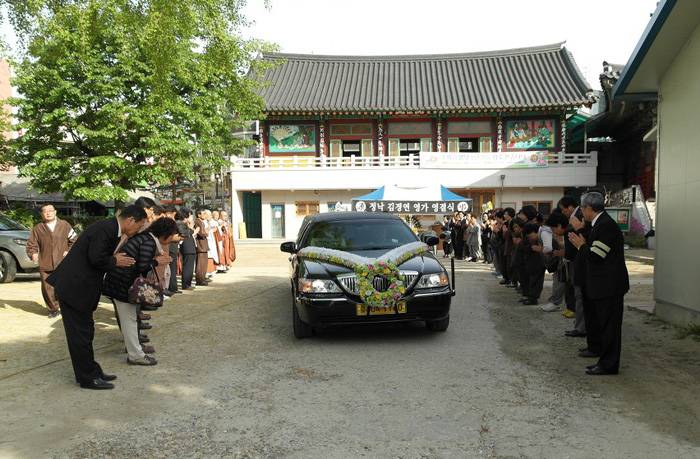 - [포교사단] 포교사단 강원지역단의 전 단장이었던 정낙 김경연 단장이 불기2556년 4월 29일 별세하여 강원지역단장으로 치러졌다. 4월 30일 포교부장 송묵스님과 포교원 직원일동이 참석하여 조문하였고, 포교사단에서는 임희웅 단장과 최은자부단장 김기호부단장, 서울지역단의 계영석 단장과 양성홍 디지털대학 부운영위원장이 참석하여 조문하였다. 김경연(74세) 전 단장은 강원지역단의 5대(초대단장)와 6대의 단장을 지내고, 올해 초부터 병석에 있다가 별세한 것인데, 강원지역단에서는 김경연 단장의 공로를 인정하여 지역단장으로 장례식을 치른 것이다. 관음사에서 영결식을 마친 후 월정사에서 수목장으로 깔끔한 뒷마무리를 하였다. 김경연 전 단장의 장례식은 강원지역단 포교사들의 단결성을 보여주는 가슴 뭉클한 시간이었다. 사진출처 : 포교사단 강원지역단 카페