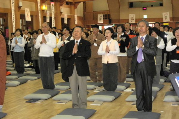 - [경남] 대한불교조계종 포교원은 불기 2556(2012). 4.21.(토) 13:00~4.22.(일) 12:00까지 직지사 만덕전에서 울산경남, 부산, 대전충남 지역단 제17회 포교사고시 1차합격자 240여명 중앙 연수교육을 봉행했다. 첫날은 삼귀의, 한글반야심경, 포교사단 정혜 임희웅 단장 격려사, 직지사 주지 성웅 큰스님 입재사, 성웅 큰스님으로부터 죽비 하사 및 청규 시달, 포교사단 임희웅 단장 포교사단의 이해, 권중서 전문포교사 불교문화 이론과 해설, 직지사 스님 주관 108배, 대한불교조계종 포교원 포교국장 남전 스님의 불교교리이해1, 2 특강으로 1부 진행되었으며, 둘째날은 아침 예불, 108배, 대한불교 조계종 포교원 포교국장 남전 스님의 참선, 대한불교조계종 교육원에 재임중인 법안 스님 불교의식의 이해, 접전 교육 열강에 이어 대한불교조계종 통도사 포교국장 묘경 스님의 지역활동 포교사 역할 에 대한 특강, 제17회 포교사 고시 1차 합격자 포교 발원문 작성, 사홍서원 순으로 포교원 연수교육을 실시 했다. 특히, 교육기간 중 울산경남 지역단 선행심 이문자 단장, 부산 지역단 향적 강수대 단장, 대전충남 지역단 원명 강종효 단장 등이 참석하시어, 원만하게 회향 할 수 있도록 자리매김을 하였다. 사진/글 : 덕산 이승선 울산경남지역단 자원봉사 행원팀/ 포교사단 홍보위원 lss5464@hanmail.net