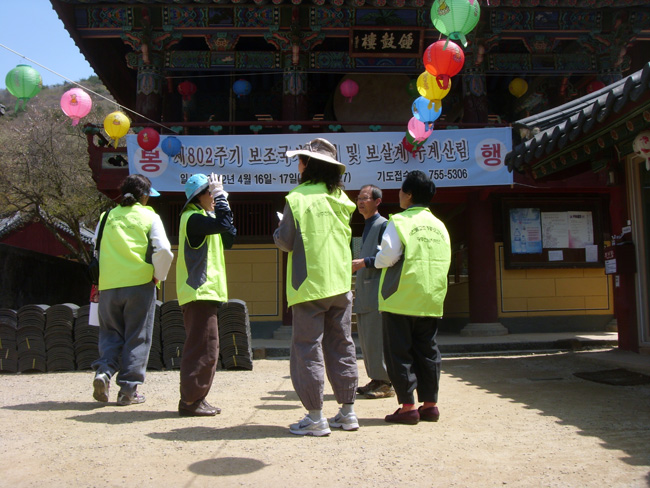 - [광주전남] 광주전남 지역단은 4월 16일 순천 송광사에서 보조국사 종재 및 보살계 수계식에서 행사가 원활히 진행되도록 안내 및 행사를 보조하였다 본 행사는 보조국사 802주기를 맞이하여 종재를 봉행하였고, 금강계단에서 보살계 수계식을 거행하는 행사로서, 매년 송광사에서 개최하고 있다 행사는 오후 1시 대웅보전에서 율원스님의 천수경, 석가모니불 정근을 시작으로 보살계 입재식을 하고, 율원 율주스님의 입재법문과 아울러 성보박물관 앞에서 범주스님의 선묵 특별전 개막식을 하였다 이후로는 저녁 공양 후, 사물놀이 공연과 저녁예불, 율원장스님의 보살계 법문을 마치고, 전국 불일회 총회를 개최하였다 저녁에도 점등식과 철야법문이 다음 날 새벽 새벽예불까지 이어지며, 이후로도 아침공양, 계첩 배포, 청우스님 법문과 정근기도, 수계식, 영가 천도재까지 오전 내내 행사가 진행된다 우리 단에서는 행사에 참여한 스님과 일반 신도를 대상으로 행사가 원활히 진행되도록 보조함과 아울러, 일주문에서 대웅보전까지 배치되어 방사 안내와 행사 장소 안내를 하였다 이번 행사에는 포교사 7명이 참여하였는데, 행사 안내는 물론 공양간 지원을 하고, 특히 송사모 회장이며 사찰문화해설팀장인 여진 김광수 포교사는 부부가 함께 참여하여, 전체적인 행사 지원을 하면서, 단원들을 상대로 사찰안내를 하였다 그리고 여보화 이숙재, 향수해 임숙희포교사는 행사 전날부터 숙식하며 행사를 도왔고, 행사가 끝나는 날까지 2박3일 행사를 지원하고자 한다 이 외에도 서승례, 김정심, 1차합격자 윤월심. 간사 윤경숙포교사가 동참하였다