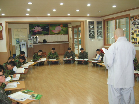 - [광주전남] 무안군 청계면에 있는 봉불사에서 법회를 진행하였다.오늘 법회는 기본 의례를 마친다음 지오스님(쉼 명상쎈터 원장)의 지도로 에니어그램 성격검사를 실시하고 자기 성격 유형을 파악하고 각 유형벌 특성과 장단점을 알아서 자기성격 유형에 맞는 자기가 노력해야 할 점등 약 2시간동안 흥미 진진한 가운데 실습과 스님의 열강과 장병들의 경청이 이루어졌다. 오늘 법회에는 장병 20명과 범진 정영균 단장 그리고 17기 서현종 예비포교사가 부대에서 제공한 버스를 이용하여 함께 하였다.맛있고 푸짐한 점심 공양과 치킨 대접을 받았으며 병사들은 법당 정리 정돈과 등표 철거작업등 봉사활동으로 주지 스님께 보답하였다.