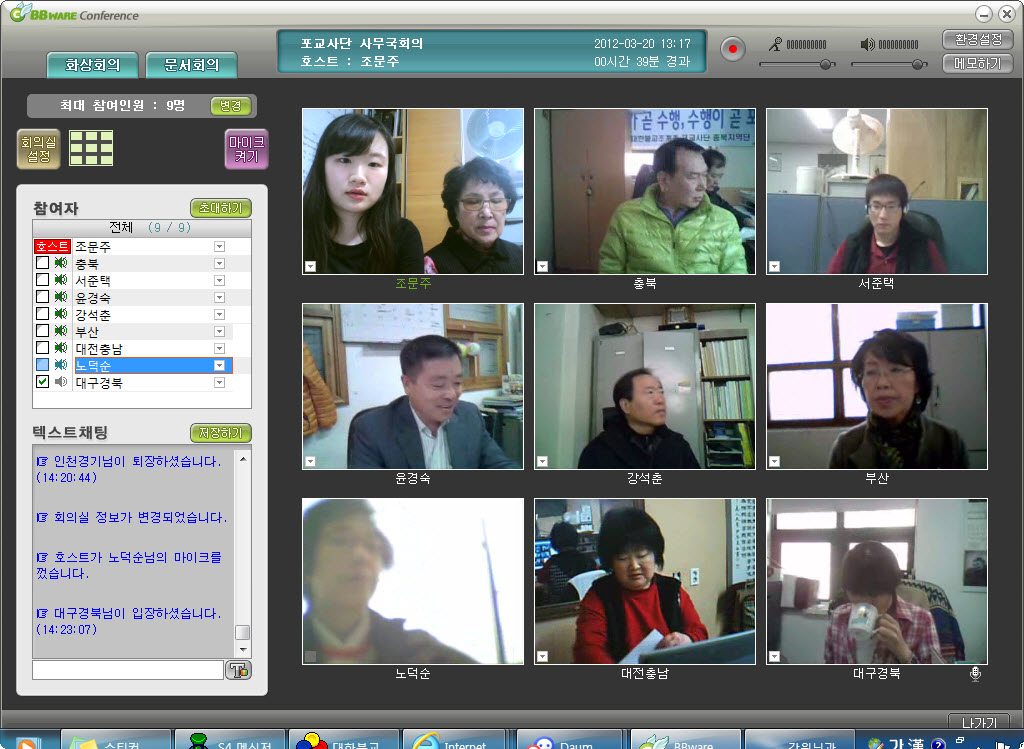 - [포교사단] 포교사단 제1차 교육위원회의가 불기2556년 3월 20일 14시 각 지역 사무국에서 있었다. 이번회의는 화상회의로 진행이 되었다. 재적위원 12명 중 7명이 참석을 하였으며, 이번 회의의 안건은 17회 포교사자격고시 1차 합격자연수 교육과정 심의의 건과 지역단 연수 실시 변경 심의의 건 그리고 포교사단 분야별연수 내용 심의의 건으로 진행이 되었다. 모든안건이 원안대로 결의가 되었으며 여법하게 회의가 마무리 되었다.