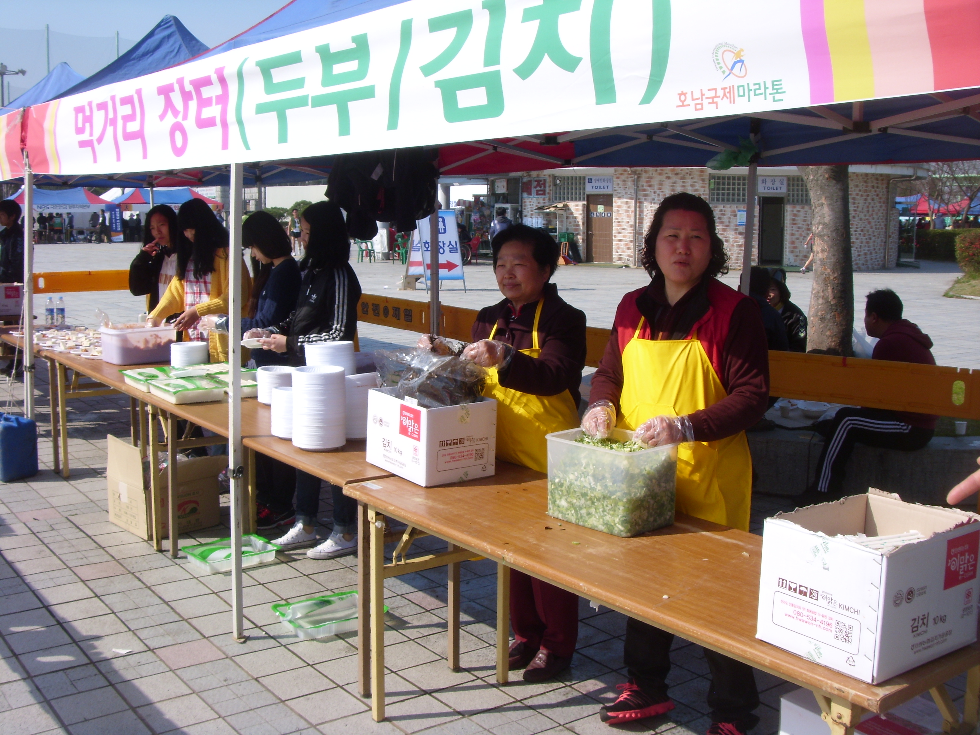 - [광주전남] 광주시와 전남도, 전남일보가 주관으로 지난 주말 4월 8일(일) 광주 상무시민공원에서 실시한 호남 국제마라톤대회에, 이 지역 포교사들이 나서서 자원봉사 하였다. 이번 행사는 매년 이맘 때 개최하는, 아마도 호남지역에서는 가장 큰 마라톤 대회이고, 따라서 자원봉사자도 많이 필요한 대회이다 광주전남 지역단에서는 광주 향림사 신도들과 함께, 본 행사 먹거리 장터의 국수와 막걸리 부스를 3년째 운영하고 있는데, 이번에는 조금 남달랐다 이번 행사에는 이지역 포교사단의 부부포교사인 간사 윤경숙포교사와 보현성 서승례포교사, 문수행 조현옥포교사가 참석했는데, 특히 문수행포교사의 경우에는 염불봉사 팀장으로서 지난3.1절마라톤대회에 부군이 1차 합격자임에도 참여하여 행사를 도왔다. 그리고 포교원 김소영 의 모친인 보현성 서승례포교사가 참여하였다. 전임 사무국장인 이재언포교사는 매번 본 대회의 자원봉사에 주도적으로 참여하고 있는데, 이른 아침부터 자원봉사자들을 독려하고, 준비에 차질없도록 이것 저것 식자재를 점검하고 작업을 지시했다. 이번 자원봉사에는 향림사 신도 10여명과 학생 10여명도 함께 동참했는데, 특히 간사 부부와 자녀들이 모두 참여하여, 모처럼 식구들이 함께하며 의미있는 시간을 갖었다 자원봉사에 참여하면서 매번 느끼는 것이, 누군가를 위한다고 생각하지만, 실은 봉사하는 사람에게 있어서, 얻는 것이 더 많은 거 같다 어제 계룡산 불자 1만인 등반대회에 참여하여 피곤한 심신이었지만, 행사가 거의 끝날 즈음, 행사 주최 관계자가 다가와, 불자 여러분이 매년 이렇게 도와주어 고맙다는 인사말을 전할 때는, 뿌듯한 하루였다. 그러면서, 타 종교인이 달걀과 요구르트를 나누어 주며, 우리 교회에 와 달라고 포교하는 모습을 보면서, 느끼는 바가 컸다. 우리는 어느 특정 사찰이 아닌 불교인으로서 단지 불교 하나를 알리고자 이렇게 자원봉사 하고 있는데, 이에 더하여 입으로 보다는 행동으로 실천하는 모습을 보여주고 있다는 자부심에 이번 봉사가 더 크게만 느껴졌다