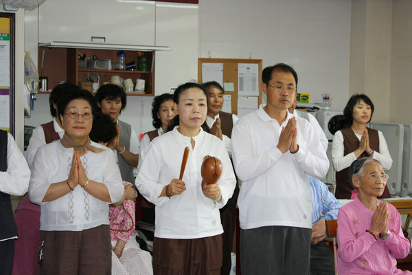 - [제주] 6월4일(토요일) 오후2시 포교사단 제주직할팀 제주총괄 염불1팀(팀장 강추옥)과 포교사님들 그리고 16기 1차합격자(16기 예비포교사)님들이 제주시 도평동 소재 노인전문요양시설인 제주양로원, 제주요양원인 ‘불교자비원’을 찾아 거동이 불편한 어르신들을 위하여 자비동(2층)에서 법회와 연꽃동에서는 간병기도를 봉행하였다. 이날 법회는 16기 1차합격자(16기예비포교사)들의 실참법회로 삼귀의, 반야심경봉독에 이어 아미타불 정근과 어르신들과의 말벚, 안마와 외로운 어르신들의 하루를 즐거운 노래와 오락의 시간으로 진행 부처님의 자비로 가득 채운 하루였다. 마치 꽃에 향기가 있듯이 사람에게도 인격에 따라 향기가 나는 사람이 있듯이 바로 그 향기가 그 사람의 인격의 바탕이고 지혜와 덕이기도 합니다. 오늘 포교사님과 16기1차합격자(16기예비포교사)님들의 향기를 느낄수 있는 법회이며 어르신들의 밝은 미소에서 부처님의 미소를 보았습니다. 여러분들 모두에게 부처님의 자비광명이 충만 하기를 바랍니다.