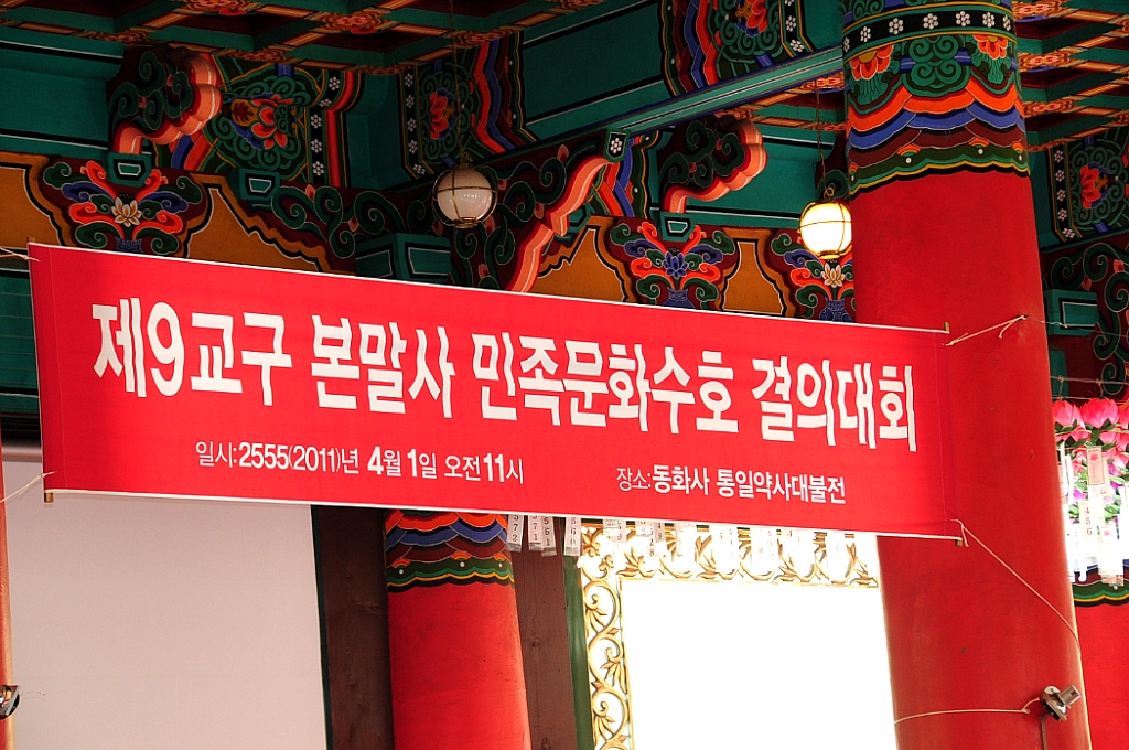 - [대구] 대구,경북지역단은 70여명이 불기 2555년 4월1일 대한조계종 제 9교구 동화사 통일약사대불전에서 "민족문화수호 결의대회"가 열렸습니다. 이날결의대회에는 동화사조실인 진제스님, 총무원장 자승스님, 동화사주지 성문스님, 스님 200 여명 사부대중 2000 여명 참석하여 민족문화수호와 자성과 쇄신결사 실천의 결의를 함께 다졌습니다. (홍보위원 노영이 포교사)