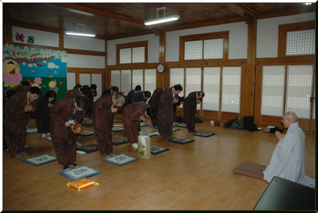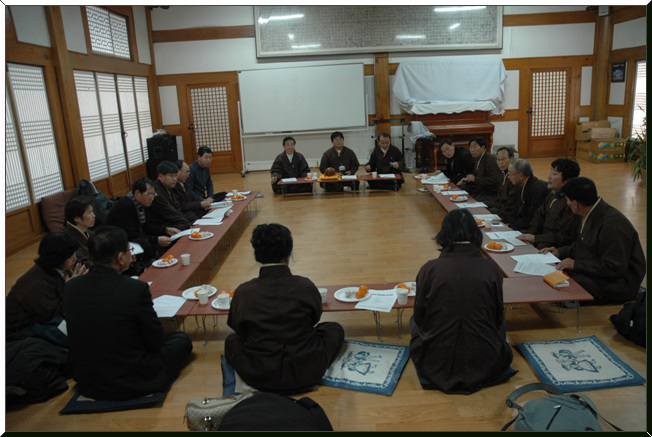 - [서울] 기사작성.사진 : 한애경(기획팀장) 불기 2555년 2월 12일 토요일 오전 10시 서울 강남구 삼성동 소재 봉은사에서 대한불교조계종 포교사단 임희웅 단장과 계영석부단장, 송수진부단장은 봉은사 주지 진화스님을 찾아뵙고 신년하례인사를 올렸다. 진화스님께서는 세배를 받으시고 덕담과 함께 포교사단의 근황을 물으셨는데, 포교사단의 10년 역사에 대해서 말씀하시며 앞으로 나아갈 방향과 비전에 대해 격려의 말씀을 해주셨다. 포교사단의 신년하례를 따뜻하게 맞아 주시고 포교사단에 많은 관심을 가져주신 봉은사 주지 진화스님께 진심으로 감사드리고 새해 건강하시기를 기원합니다.