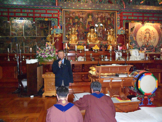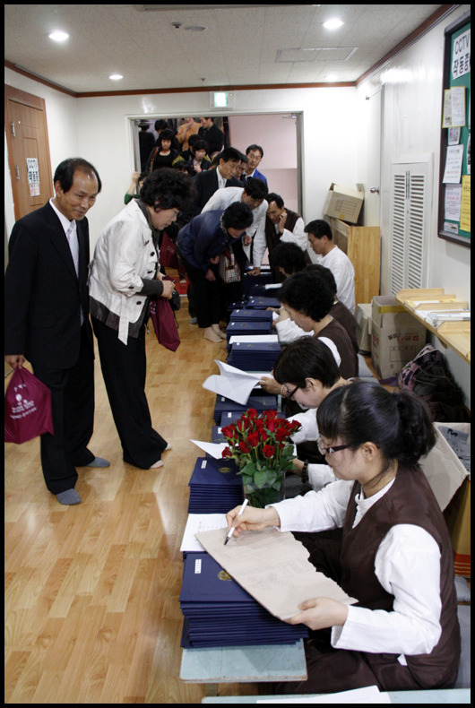- [대구] 대한불교조계종 한국불교대학 대관음사에서는 포교사들의 진행 및 동참아래 지난 10월9일 오후2시30분 大관음사 옥불보전에서 전계화상이신 우학스님을 계사로 모시고 금강계단 수계법회를 봉행하였다.재가 불자들이 보살계의 십중대계와 사십팔경계를 수지하고 연비를 받고 수계 서원문을 읽으면서 불자로 다시 태어나는 엄숙한 의식에 많이 동참하여 성황을 이루었다. 우리 포교사는 대중포교는 물론 불교의식에서도 단연 포교사 역할의 중요성과 엄숙하고 의연한 자세에 매료되지 않을수 없었으며 이런 행사를 통하여 포교사가 앞으로 보다 더 많은 분야에서 자리매김을 해야겠다는 각오를 다지는 계기가 되었으면 하는 바램이다.