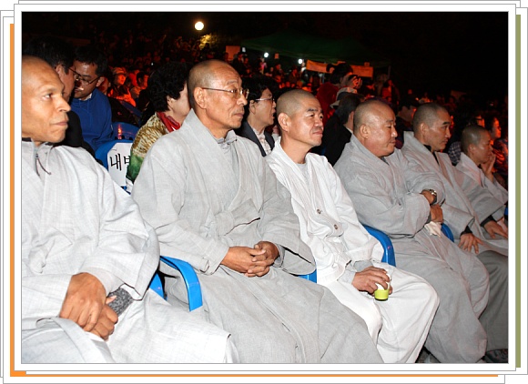 - [서울] 자연과 사람과 음악이 하나되는 가을 산사에서...... 10월 16일(토) 저녁 6시30분,삼각산 화계골 열린마루에서 자연과 사람과 음악이 하나되어 어우러지는 고운빛 가을 산사에음악회 시작을 알리는 법고가 장중히 울리며 1500여 대중이 운집한 가운데 화계 단풍음악회의 서막이 올랐다. 고즈넉한 산사 느티나무 아래서 열리는 음악회는 어우러진 공간 자체가 자연과 음악의 만남이었다. 올해로 5번째를 맞이하는 화계 단풍음악회는 어느해보다 풍성한 프로그램으로 지역사회 일꾼들,지역민과 둘레길 탐방객등 종교와 문화가 어우러진 가운데 한바탕 놀이 마당으로 진행되었다. 박겸수 강북 구청장을 비롯, 정양석 국회의원등 지역 인사들이 모두 참석해 끝까지 자리를 함께하며 화계사 주지 수암 스님과 담소를 나누는 모습은 종교를 떠나 화합과 상생의 따뜻한 마음과 평화로움이 가득한 자리이기도 하였다. 황승환(개그맨)의 사회로 화계사 합창단, 신이나(동국대), 비보이 댄스그룹 생동감, 김태곤, 김삼진교수, 주현미등이 출연하여 현대와 옛문화가 함께하는 무대로 꾸며 나갔다.단 하루 만이라도 세상의 짐 내려놓을 수 있는 산사에서 함께한 대중들은 환호하며화계사 불자들이 정성어린 차와 떡공양으로 찾아오신 관객들에게 일일이 고마움을 전하자마음가득 넉넉하고 아름다운 추억을 담아 간다며 환한 웃음으로 화답하였다. 앞으로 화계 단풍 음악회는 종교를 떠나, 이웃간의 사랑과 따뜻한 온기를 나누며 더불어 하나되는 지역 사회 축제의 장 으로 자리매김해 나갈 것이다 글.사진 : 이정기(글로벌기획팀)