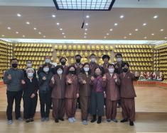 - [울산] # 청보리팀은 첫째, 둘째, 세째 금요일 금강경과 행원참법을 번갈아가며 독송하고 있습니다. 팀원님들 돌아가며 집전을 함으로써 집전능력 향상을 도모하며, 수행의 일환으로 일반 불자님들과 함 께 하고 있습니다. [2023년 1월13일 청보리팀 행원참법 독송] 정토사 설법전에서 행원참법 봉행하였습니다. 겨울비 내려 상큼한 공기 몰고 오신 님들과 지극한 마음으로 독송하였습니다 팀원은 연화행단장님, 지문수석부단장님, 혜주님, 자비행님, 성청정님, 구선향, 심정님, 여련성님, 진실행님, 정화심님,법광님이 신도분들과 함께 하였습니다. 삼귀의와 1장 예경삼보는 심정님 집전, 2장 108배 참회발원문 진실행님 집전, 3장 아미타 참법 여련성님 4장 약사여래참법과 관세음정근, 사홍서원, 지문님 신도분들이 한분 한분 점차로 늘어 나시니 힘이 나고 더불어 팀원님들의 집전 실력도 향상되어가고 있음을 느낌니다. 늦은 시간 팀회의까지 수고많으셨습니다 ~♡ 감사합니다 ???? 글 : 구선향/서영순