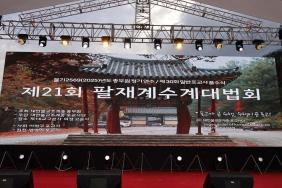 - [포교사단] 불기2569(2025)년 9월 13일 대한불교조계종 포교사단(단장 김영석)은 본단 및 전국 13개 지역단 3,000여 포교사들이 참석하여 제21회 팔재계수계대법회 및 총무원 포교부 연수를, 화마가 할퀴고 간 경북 의성 조계종 제 16교구 본사, 고운사에서 무박 2일 용맹정진으로 개최했다. 제30회 신규포교사 품수식을 병행한 이번 팔재계에는 계사로 대한불교조계종 원로회의 의장 불영 자광스님이 참석해서 포교사들에게 계를 내렸다. 식전 공연을 시작으로 법회가 시작됐으며 포교사들과 포교사의 자녀가 출연하여 전국에서 오느라 지친 포교사들에게 즐거움과 감동을 선사했다. 맑고향기롭게 기타동아리, 김선아 무용가, 이준형 포교사, 추현철 포교사, 최종식 포교사 대구찬불포교팀, 소프라노 진소윤님 등 이 공연에 출연했다. 내빈입장과 포교사단 강의수 수석부단장의 개회선언으로 본식이 시작되고 포교사단과 13개 지역단의 단기가 단장들과 함께 입장하며 단상에 자리했고, 이어서 예식이 진행 됐으며, 포교사들과 귀빈들을 모시는 김영석 단장의 인사말이 이어졌다. 대한불교조계종 총무원장 진우스님은 바쁜 일정에 영상으로 신규포교사들의 품수와 팔재계 수계대법회에 참석한 포교사들을 격려하는 치사를 주셨고, 조계종 제16교구 교구장 등운 스님은 화마를 입었지만 긍정적인 생각으로 재건을 준비하는 고운사에 와주셔서 큰 힘이 된다며 포교사들과 내외 귀빈들을 맞이하는 환영사를 했다. 김주수 의성군수와, 지역 박형수 국회의원의 인사말이 끝나고 총무원장상 시상을 포교부장 정무스님이 대신했다. 개인상에 허점자, 정동례 포교사, 팀상에 대전세종충남지역단 총괄 경찰포교팀이 영광의 수상을 했다. 시상 후 이어진 제30회 신규포교사 품수식은 대표로 방인우, 정다정 포교사가 단복수여와 포교사증 수여를 받았으며 단하의 모든 신규포교사가 단복을 갖춰 입으며 포교사의 길에 들어서는 의식을 가졌다. 이어서 계사를 모시고 팔재계의 의미와 수계의 엄함에 대한 법문을 받고 3,000여 대중이 한뜻으로 수계를 받는 연비의식을 행했으며, 자리정리 후 포교부장 정무스님의 특강을 듣는 시간을 가졌다. 이어진 2부 행사에서는 자리에 참석한 포교사단 전, 현직 임원들을 소개하는 시간과 포교활동 30년 근속 포교사에 대한 휘장수여가 있었으며, 대표로 오창록, 권대자 포교사가 수여 받았다. 바로 진행된 포교사단장상 수여식에서는 개인 43명, 팀 22개팀이 수여 받는 영광을 누렸다. 포교사의 노래를 전체 포교사가 합창하고, 이명우, 이경희 포교사가 선창하는 전도선언문을 낭독하며 포교의 의지를 다졌으며, 이어진 축하공연은 포교사 연합합창단의 합창과 김선아 무용가의 관음무가 좌중을 감동과 환희로 넘치게 했다. 화마로 피해를 입은 고운사에 피해극복을 위한 포교사들의 발원문 붙이가 있었으며, 즉석에서 무대에 올라 발원하는 시간을 통해 많은 포교사가 희망의 발원을 염원했다. 다음순서로 불교문화해설 시연이 있었으며 박종안, 정찬진, 김서연, 장영, 이성학 포교사가 각자의 주제를 해설하는 시연시간을 가졌다. 자리정리 후 5분 선명상 시간과 경북지역단 포교사들의 선도로 대념처경 독송을, 자리한 전체 포교사가 참여하여 완독 하며 무박 용맹정진을 실시했다. 먼동도 트기전인 새벽4시 전상웅, 김효현, 양영미 포교사의 집전으로 새벽예불을 드리고 김영석 포교사단장의 포교사단 교육사업과 자격증 과정에 대한 소개를 듣는 시간을 가졌다. 이어진 회향식 에서는 제16교구장 등운스님과 포교국장 도진스님의 회향사와 행사를 위해 수고를 한 경북지역단 포교사들에게 감사드리는 격려금을 전달하는 시간을 갖고 사홍서원후 우리도 부처님같이를 대중이 함께 합창하며 제21회 팔재계수계대법회를 마치고, 지역단별 기념촬영을 하며 회향했다.