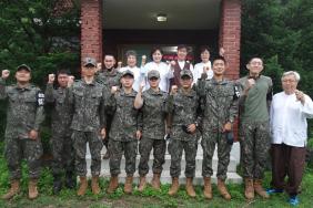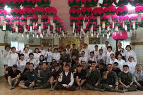 - [서울] 불기 2566(2022)년 6월 26일 대한불교조계종 포교사단 서울지역단 북부군1팀의 포교사들이 육군 제5사단 상승암에서 군법회를 열었다. 경기도 연천군 청산면에 위치한 상승암은 북부군1팀이 꾸준하게 최전방 부대의 장병들에게 부처님의 말씀을 전하는 군법당이다. 이날 대한불교조계종 포교사단 성수 서정각 단장, 북부군1팀의 심자재 강선숙 포교사(팀장), 원행심 강은자 포교사, 성수 임동석 포교사, 대경 박수정 포교사가 참석했다. 대한불교조계종 포교사단 성수 서정각 단장은 "법당에 계시는 부처님이 무형물 같지만 실제로는 그렇지 않다. 눈에 보이지 않아도 부처님은 살아계신다. 부처님께 예경을 올리고 법당 내부를 청소하는 것이 중요하다. 오늘 여기 법당에 오니 장마도 있고 기존의 물건이 정리정돈이 되어 있지 않아서 냄새가 나기도 해서 깨끗하게 법당 내부와 외부를 청소했다. 법당은 부처님이 계시는 곳으로서 늘 깨끗하게 정리정돈하는 것이 필요하다. 부처님의 말씀을 통해 스스로 안심을 얻는 것이 중요하다. 지혜를 얻게 되면 사회에 나가서 본인에게 이익이 된다는 것을 기억하면 좋겠다. 법당을 청소하다보니 많이 노후화되고 낙후된 상태였다. 상승암 법당을 살려야겠다는 생각이 들었다. 군장병들도 법회에 자주 참석해주면 좋겠고 전역 후에도 절에 다니면서 부처님의 말씀을 마음에 새기면 좋겠다"고 말했다. 성수 임동석 포교사는 설법에서 "선생이라는 단어는 먼저 태어났다는 뜻을 지니고 있다. 먼저 태어났다는 것은 경험이 많고 지혜가 있게 된다는 의미이다. 선생님이라고 생각하면 너무 어렵게 느껴질 수도 있지만 편안하게 지혜를 배운다는 마음으로 들어주면 좋겠다. 갈등이라는 것은 칡덩쿨과 등나무처럼 얽히는 것을 의미한다. 군에서도 여러 갈등이 있을 수 있고 사회에서도 다양한 갈등이 존재한다. 친구를 사귈 때 나쁜 친구와 좋은 친구를 어떻게 구분할 지를 살펴보면 내가 말하지 않아도 와서 도와주는 친구가 가장 좋은 친구라고 할 수 있다. 그런데 이런 친구는 많지 않기 때문에 5명만 있어도 성공했다고 볼 수 있다. 좋은 친구를 얻고자 할 때에는 스스로가 먼저 좋은 친구가 되어주는 것도 필요하다. 절에서는 화장실을 해우소라고 하는데 모든 근심이 사라지는 곳이라는 뜻이다. 군 생활을 하면서 여러 가지 어려운 일이 있겠지만 지혜를 발휘해서 바른 방향으로 해결을 하고 부처님의 말씀을 통해 마음을 다스려서 지혜로운 장병이 되면 좋겠다"고 말했다. 이날 북부군1팀 포교사들은 법회가 있기 전 법당을 깨끗하게 청소하고 연등의 위치를 조정하고 선반 위치를 바꾸었다. 군 장병들이 보다 부처님을 환하게 바라보고 시야가 넓어지도록 정리정돈을 했다.
