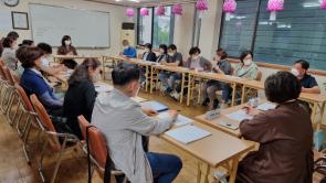 - [울산] 2022년5월20일 27회 포교사 1차 합격자 연수교육이 울산지역단에서 있었습니다. 1차합격자 16분 전원 참석하였으며, 연화행(정연숙)단장님, 지문(이영수)수석부단장님, 전등행(박민재)부단장님, 자비행(최나영)총괄2팀장님, 홍보위원 고경주(김미숙) 참석하였습니다. 지문 수석부단장님의 집전에 맞춰 삼귀의와 반야심경을 봉독하였습니다. 1차합격자님들의 처음의 자리, 밝은모습과 희망에 찬 목소리의 자기소개를 하며 인사를 나누었습니다. 단장님의 앞으로의 연수과정에 대한 설명과 궁금한 점 질문이 이어졌습니다. 1차합격자님들의 앞으로 3달여동안의 연수계획표입니다. 8명씩 2팀으로 나눠 포교사로서의 갖춰야 할 소양과 울산지역단 각 팀들의 활동에 참여해 봄으로서 포교사로서의 활동 전반의 내용을 숙지하고 알아가는 시간들입니다. 연화행 단장님, 연수를 잘 마쳐서 꼭 전원 포교사활동을 같이 할 수 있기를 바란다는 말씀이 계셨습니다. 1차로 교육이 끝나고 잠깐의 휴식시간을 가지고 2차로 사찰예절이 있었습니다. 장소가 여의치 않아 협소한 공간이지만 자리를 깔고 단장님께서 직접 사찰에서의 기본자세에 대해 설명을 하셨습니다. 불교대학에서 배워서 잘 알고 계시겠지만 다시 해 보겠습니다 하며 시작하였습니다. 차수. 합장, 절하는법, 고두례, 접족례, 장궤합장 등 간단하고 잘 할것 같은 기본예절이지만 정확하게 알고 계시기를 바라며. 시행 해 봅니다. 협소해 불편한 상황에도 적극적으로 열심히 해 주셨습니다. 27기 1차합격자님들, 봄의 연두빛의 새싹을 보는듯한 느낌이었습니다. 앞으로의 좋은 결실 있으시기를 바랍니다. 사홍서원을 끝으로 오늘 연수가 끝났습니다. 수고 하셨습니다.