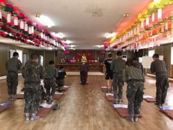 - [울산] 햇살이 뜨겁게 와 닿는 오늘,불기2566년5월22일 1대대법회를 했다. 여법한 법회진행을 위해 항상 그러하듯 장소를 정비하고 한명 한명 들어오는 장병들에게 이름을 부르면서 안부를 물어보는등의 친근감을 표하는 도성최복근님의 마음씀씀이 덕분에 법회분위기는 금방 화기애애해진다. 오늘은 가벼운 마음으로 접할수 있길 바라는 마음으로 무재칠시에 대해 말하였다. 무재칠시가 습이 되어 늘 가는곳 마다 긍정에너지와 활기참으로 좋은기운을 불러들여 행운이 따르는 사람이 되길 바라는 마음으로..... 우리1대대장병들은 무재칠시를 몰랐다고 할지라도 늘 밝은얼굴에 따뜻한 말투의 감사인사가 베여있기에 그것이 바로 보시중의하나라고 알려주는듯 하다^^ 병장한명이 이번이 마지막법회가 될것 같다고 인사를 건넨다. 7월달에 전역인지라 6월달법회때 전역선물을 준비해야겠다고 생각했는데~~~~아이쿠 ~~~ 건강하게 전역하는 장병도 감사하고 더 건강하게 복무중인 장병들도 감사하다. 오늘도 도성님의 밝은얼굴과 늘 좋은말로 힘을 주는 긍정에너지를 듬뿍 받은 법회였다. 감사합니다^^ 글 : 향림성/박성희/20기