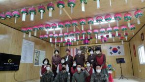 - [울산] 불기2566년 부처님오신날 봉축법회를 제7765부대 여단 호국사에서 여법하게 진행하였다. 9시에 호국사에 도착하여 법당정리와 주변청소를 하고 광덕이영우포교사님이 준비하신 오디오와 비디오시스템을 설치하며 모든 준비를 마쳤다. 10시30분에 기동중대장 윤선재대위를 비롯한 16명의 장병과 권태수,권기숙 두분의 봉사자와 함께 식전행사로 육법공양을 하였다. 사회자의 개회선언과 삼귀의를 시작으로 법회가 진행되었고 반야심경 봉독과 찬불가 예불의식이 이어졌다. 군종 오주옥상병의 발원문 봉독과 윤선재 중대장의 축사 그리고 신호근포교사님의 종정스님 법어 대독과 최상문포교사의 봉축법문을 거쳐 사홍서원을 함께 부르면서 1부 순서를 마쳤다. 2부에서는 해인성 이영애포교사님의 진행으로 관욕의식이 거행되었다. 음원으로 석가모니불정근을 봉송하면서 윤선재기동중대장을 시작으로 포교사님들과 장병들 그리고 봉사자들순으로 관욕의식을 하고 기념촬영으로 법회를 마쳤다. 봉사자님들이 준비하신 음식과 포교팀에서 준비한 음식으로 점심공양을 하면서 봉축행사는 무난히 잘 마쳤다. 참석하여주신 모든장병들에게 감사드리며 꼼꼼히 오디오장비를 준비하시고 예행연습까지 해오신 광덕이영우님, 집전하시고 준비하느라 고생하신 지수신호근팀장님, 그리고 처음으로 봉축법회를 참석했지만 육법공양과 관욕의식을 무난하게 잘 진행하신 해인성이영애님 모두 수고많으셨습니다. 그리고 오늘 법회참석은 못했지만 법당정리와 항상 음식봉사를 해주시는 옥명희보살님과 권태수,권기숙보살님들께도 감사드리며 묘각전기택님과 금강수손수정님의 수고가 깃든 거리등으로 호국사가는 길이 더 싱그러웠음에 감사드립니다. 사회는 광덕 이영우포교사님 집전은 지수 신호근님 나레이션은 수월 최상문 상단진설은 해인성 이영애포교사님께서 수고하셨습니다. 글 : 수월/최상문/23기