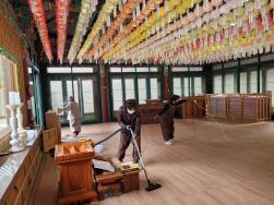 - [울산] 2월 13일 일요일 석남사 팀 활동에 심일화님, 만법지님, 공덕행 참석했습니다. 한 주 동안 안부 인사 나누며 만법지님이 직접 만들어 오신 유부초밥으로 점심공양했습니다. 코로나로 석남사 점시공양을 하지 않게되면서 만법지님이 매주 팀원들을 위해 직접 점심을 준비해오고 계십니다. 감사합니다. 관세음보살 _()_ 다가오는 화요일 정월대보름, 동안거 해제일 날 맞이 사리보탑전 대청소 했습니다. 해우소도 깨끗하게 청소~ *해우소란 '근심을 푸는 곳' 몸속의 오물을 버리듯 번뇌를 버린다는 뜻이 담겨있습니다. '먼지를 털고 때를 벗겨라' 마음속에 있는 먼지와 때도 대청소하고, 깨달음의 문으로 한 발짝 다가가길 발원합니다 _()_ 글 : 공덕행/김현주/19기