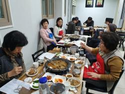 - [울산] 1월 28일 금요일 청보리팀활동 - 월례회 장소 : 장생포 유림뼈다귀 해장국 코로나로 조심스러워 월례회 하자고 제안을 하는 것도 팀원들의 의견을 듣고 일정을 잡아서 그래도 해야 한다는 생각으로 마스크 안전하게 잘 쓰고 진행을 하였습니다. 참석자 : 11/13명 참석 석전 강학수, 연화행 정연숙, 보림화 김미선, 지문 이영수, 자비행 최나영, 구선향 서영순 심정 김창희, 해주 장영진, 성청정 김규림,명성수 전영신, 여련성 김홍연 그동안 열정으로 우리 청보리팀을 2년간 잘 이끌어 주시고 포교사단 총괄2팀장으로 활동을 하시는 최나영 전 팀장님은 아쉬움이 많이 남는다는 인사말을 하였습니다. 그리고 새롭게 청보리팀을 이끌어 주실 구선향 서영순 팀장님의 당찬 인사말씀 이번 회기는 청보리팀이 한 단계 업그레이드 하는 회기가 될거 같아서 기대가 큽니다. 또 우리 청보리팀에 새로 입단하신 지문 이영수님 포교사로서 활동을 해야하는데 침체된 것이 아쉽다면서 인사를 하시었다. 개인적으로는 많은 경력과 실력이 두루 갖추어진 분 께서 함께 하게 되어 기대가 큽니다. 새로 울산지역단장님으로 역할을 맡으신 연화행 정연숙님 앞으로 우리 포교사단의 갈길 우리 울산지역단의 방향 등을 말씀하시고 함께 해주기를 당부하시었습니다. 전 단장님이신 석전님 께서 우리 포교사는 염불도 하고 목탁도 치고, 설법도 하고, 명상도 하고 해서 종합불자인이 되어 언제 어디서든지 조건이 주어지면 할수 있어야 한다고 강조를 하셨습니다. 그외에도 신입 포교사님만 함께 했으면 참 좋았을 거 같은데 아쉽다는 말씀 다음번에는 꼭 참석하신다는 뒷얘기가 있었다. 또 회의에서 행원참법을 독송으로 하고 절은 많이 하지 않는다고 해서 참 좋다는 말씀도 있었고 정말로 열심히 하고 싶은데 일때문에 아쉽다면서 조금만 더 기다려 달라는 말씀, 그동안 참석을 잘 못했지만 이제는 금요일이라 참석 가능하다는 희망의 말씀, 두루두루 너무 오랫만에 만나서 좋은 말씀들을 많이 해 주시어 새로운 회기를 시작하면서 벌써 발전하는 듯한 느낌이 듭니다. 2022-23 청보리팀에는 팀장 구선향 서영순 총무위원 명성수 전영신 홍보위원 여련성 김홍연 임원으로 활동하게 되었습니다. 새해 계획으로는 포교사 역량강화활동으로 행원참법과 금강경을 누구나 잘 할수 있게 매주 금요일 청보리팀만 활동을 하기로 했다 년 2회정도는 순례도 진행을 하기로 했습니다. 보리보리 청보리 화이팅! 감사합니다. 글,사진:김홍연/여련성/24기