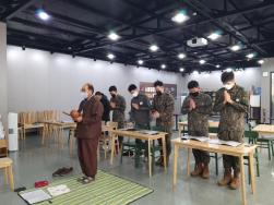 - [울산] 불기2566년1월23일 1대대 법회활동에 도성님, 향림성님이 참석했다. 눈이 올것 같은 하늘을 보며 언양가는 국도를 달렸다. 혹한기훈련을 다음주에 한다는데 춥지않기를 바라는 마음을 안고 또 창밖을보며 또 하늘을 보며.. 휴게실에서 하는 법회인지라 부처님만 모셨던 첫법회의 부족함을 도성님께서 향을 챙겨오셔서 보태었다. 법회들어가기전에 그래도 법당을 찾은 장병들이 사회에 나가더라도 기본 사찰예절은 알아야하지않을까하는 마음에 절하는법부터 알려주고 오늘은 자기자신과의 약속을 지킴으로써 그것이 기본이 되어 사회에 나가더라도 보다더 책임감있고 성숙된 사람이 될수 있다는 취지의 법문을 하면서 군인들에게 어떤 목표를 가지고 있는지,그리고 그 목표를 실행하기위해 나는 무엇을 할것인가 하는 주제로 1분스피치 시간을 가졌다. 참석인원6명의 스피치시간이 끝날때 우린 더 밝고 긍정적인 세상을 만날수 있겠구나 하는 믿음이 생겨 저절로 미소가 지어졌다 처음 법당온 장병들에겐 염주를 챙겨주고 긍정에너지가 넘치는 우리장병들은 오늘도 우리들에게 그 힘찬에너지로 힘을 주었다 오늘장병들이 먹고싶어한것은 치킨과 피자였다 먹고싶은것을 챙겨줄수 있슴도 큰 기쁨이다^^ 우리1대대대원들이 다음주 예정되어있는 혹한기훈련에 1명의 낙오자 없이 잘할수 있길 기원한다()()() 글 : 박성희/향림성/20기