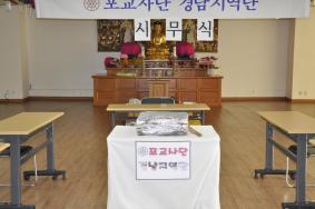- [부산] 포교사단 부산지역단(단장 법해 송재린·이하 부산지역단)이 1월 20일 대한불교조계종 제14교구 본사 선찰대본산 금정총림 범어사 2021. 11. 15 ~ 2022. 01. 23(70일간)법화경 독송기도 회향으로 동안거 스님 대중공양으로 회향을 하였습니다. 부산지역단은 코로나 기간 동안 안거를 맞아 법화경 경전을 독송하며 수행정진을 이어왔습니다. 회향 때마다 선방을 방문해 대중공양을 올렸고 기도 기간 모금한 보시금은 소외 이웃을 위한 나눔으로 회향했습니다. 이번 동안거 법화경 독송에는 부산지역단 40개 팀 표교사단 650명이 전원 동참해 릴레이 독송을 이어 같습니다.