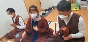 - [서울] 불기 2565(2021)년 5월 22일 토요일 대한불교조계종 포교사단 서울지역단 제26기 1차 합격자 의식집전교육이 대각사에서 열렸다. 이날 본자연 장희자 포교사, 상영 이성주 포교사가 의식집전 교육을 했다. 의식집전교육은 오전반과 오후반으로 나뉘어서 진행됐다. 코로나19의 상황에 따라 체온측정, 마스크 착용, 손소독제 사용, 거리두기 등을 철저하게 지키고 진행됐다. 이날 제26기 1차 합격자들 중에서 반장과 총무를 뽑았는데 오전반은 대현 이동원씨가 반장을 정목 김형자씨가 총무를 맡았고 오후반은 김은하 임영정씨가 반장을 해월 김동규씨가 총무를 맡기로 했다.