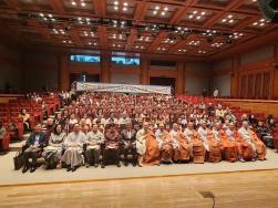 - [포교사단] 불기2569(2025)년 3월 8일(토) 대한불교조계종 포교사단은 포교사단 출범 25주년 및 제12회 포교사의 날 기념법회를 동국대학교 중강당에서 개최했다. 전국 13개 지역단에서 450여명의 대의원들이 참석하여 자리 했으며, 포교원장 선업스님, 김영석(범일) 포교사단장과 본단 임원, 13개 지역단 단장, 임원과 전직 임원들 모임인 수메다회 회원들이 참석하여 자리를 빛냈다. 각 지역단 대의원들이 도착하여 중식과 잠시 휴식을 취할 때 식장 2층에서는 12시에 포교사단 전직 단장들 모임인 수메다회 정기 모임이 있었고, 식장에서는 12:50분부터 식전행사로 불교문화해설사 지도자 과정을 수료한 4분의 포교사가 해설시연을 했다. 바로 이어진 정기대의원총회에서는 2024년 사업결산과 포교사단 김용수 감사의 감사 보고를 받고 김영석 의장의 인사말과 사단 중요사안에 대한 토의와 의결이 진행됐다. 잠시 휴식 후 포교사단출범 25주년 및 제12회 포교사의 날 기념법회를 사회자의 개회선언과 함께 시작했으며, 의식 진행 후 포교사단장의 기념사, 김기병 초대 단장의 축사가 이어지고 시상식이 진행됐다. 시상식 후 청법가로 포교원장 스님을 모셨으며, 법문에 앞서 원장스님의 선창으로 “우리는 포교사! 한국불교 지킴이! 포교는 수행! 수행은 포교! 부처님법 전합시다!!!” 구호를 전체 포교사와 제창하고 ‘‘종교인구와 불교에 대한 관심이 줄어드는 이때 포교사의 역할이 중요합니다. 포교 영향력을 위해 포교사의 양적 증가도 꾀하며 부처님 가르침을 전하는 포교사로서 역할을 충실히 해 주시기 바랍니다.“며 격려의 말씀을 주셨다. 이어서 서울지역단 합창단의 축하공연이 이준형 포교사의 지휘로 진행되었으며, 사홍서원과 공지사항을 전달하고 전체 기념사진 촬영을 끝으로 행사를 마쳤다. 이번 행사에도 서울지역단 포교사들이 교통정리, 점명, 행사진행 등 많은 곳에서 봉사를 진행했으며, 마무리 까지 정리 후 귀가했다.