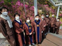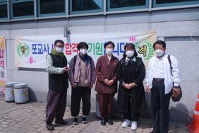 - [울산] 지난 4월 10일 벚꽃이 활짝 핀 정토사에서 26기 포교사 고시 응시생들을 위한 격려의 시간이 있었습니다. 이번 26기 포교사 고시는 정토사 불교대학에서 김경숙(정화심), 정규홍(덕산), 허용복(대림) 황룡사 불교대학에서 송정희(만리향), 한찬욱(무구) 통도사 불교대학에서 이영애(해인성) 총 6분이 응시를 하셨습니다. 영암 단장님과 정연숙 수석부단장님, 이영우 부단장님, 강학수 포교사단 감사님, 조원석 총괄팀장님, 박민재 총괄팀장님, 조성남 울산포교사단 간사님(수보리팀장), 홍보 최재연과 25기 백재효, 임동우, 이태용, 김정윤, 김명하 포교사님이 함께 격려의 시간을 가졌습니다. 철저하게 개인소독과 방역수칙을 지켰습니다. 정토사 회주 덕진스님께서 응시하시는 분들을 위한 덕담과 격려의 말씀을 해주셨습니다. 이번 응시생들이 포교사가 되기 위해 발원하고 서원을 세우고 원력을 세운 것을 칭찬해 주시고, 자신을 지혜롭게 하고 다른 사람도 지혜롭게 이끄는 것이 포교사의 의무라시며 합격을 기원해주셨습니다. 정토사 불교대학 응시생들 황룡사 불교대학 응시생들 26기 응시생들을 위하여 25기 선배기수에서 떡과 음료와 생수와 간식 등을 전달하며 격려 해 주셨습니다. 응시생들의 편안한 시험을 위하여 운전으로 수고해주신 영암단장님과 강학수 포교사단 감사님께 감사의 인사를 드립니다. 정토사불교대학에서 응시하신 허용복님은 집이 시험장과 가까워서 바로 시험장으로 가셔서 아쉬웠습니다. 칭찬과 격려의 말씀을 해 주신 덕진스님께 감사드리고, 영암 단장님 이하 격려의 시간을 함께 해주신 포교사분들께 감사드립니다. 모든 응시생의 합격을 기원합니다.