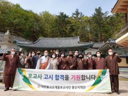 - [강원] 부루나존자의 전법정신을 이어갈 제 26회 강원도일반포교사 고시가 불기2565년 4월 10일 14:00시 동해시 두타산 삼화사 소재 동해불교대학에서 응시자 42명이 참석한 가운데 시행되었다. 응시자들은 그동안 갈고닦은 실력을 유감없이 발휘하였고 선배포교사들은 코로나19의 확산방지를 위해 소수인원이 참여하여 후배포교사들을 응원하였다. 일반 필기고사 합격자는 4월28일 발표할 예정이다. 반포교사 합격자는 6월5~6일, 6월12~13일 열리는 1차 연수에 참가한 뒤 온라인 교육과 현장 연수를 이수해야 한다. 일반고시 최종 합격자는 8월 발표 예정이다. 이날 고시장에서는 코로나19 확산을 막기 위해 고사장 내부 소독과 물휴지와 손소독제를 비치하고 고사장 입구에서 체온 확인, 손 소독제, 마스크 착용을 확인하는 한편 자가진단서로 건강상태를 진단하도록 안내했다.