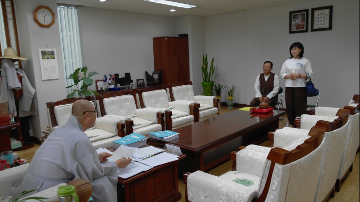 - [경남] 대한불교조계종 포교사단 경남지역단(선행심 이문자 단장)은 불기 2559년 7월 25일(토) 10:00~17:00까지 지역단 사무실에서 제8대 집행업무에 대한 2015년 상반기 자체 감사를 봉행했다. 이날 현덕 김위영, 법성화 구말임 감사는 복무관리, 문서분야(문서접수 발송관계, 문서작성, 각종회의 서류, 일반문서 보관), 인사관리, 조직관리, 각종 연수, 행사 참가 현황, 팀별 활동, 관인 관리, 재산 관리, 예산회계처리, 지역단에서 포교사단으로 보고업무, 기타사항 등을 면밀하게 살피면서 제8대 집행업무 이상유무를 철두철미하게 감사를 늦은 시간까지 실시했고, 휴일임에도 불구하고 선행심 이문자(지역단 단장), 덕산 이승선, 대진 박정근(부단장), 정진화 노덕순(간사)은 확인 필요한 근거자료를 감사들의 확인 요구사항에 적극협조, 제 8대 집행업무 관련 2015년 상반기 감사를 성실하게 수감 받았다. 특히 모든 회무, 회계 관리상태 확인결과 적법하게 관리되고있으며 관리가 양호하다는 강평을 끝으로 감사가 마무리되었다. 사진/ 글 : 대한불교조계종포교사단 경남지역단 중앙홍보위원 덕산 이승선